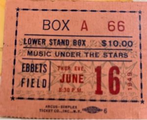 What kind of knowledge did they carry to Ebbets Field that night? She knew her beloved cousin Melvin had fallen in the Ardennes forest. He knew Uncle Max was murdered in Auschwitz and Cousin Davey had helped liberate Dachau. They both knew Yiddish whispers of death and horror. And they knew their own good fortune, surrounded by family, safe in the Bronx promised land of steam heat and spacious parks. They knew swimming and flirting in the summer mountains. They were young and their lives were beginning.
